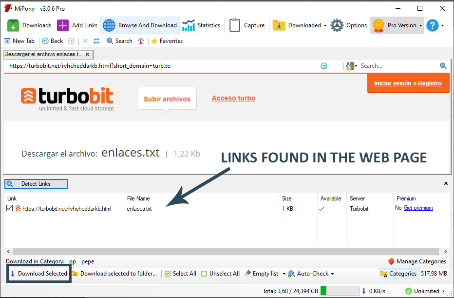 Siempre que puede Mipony resuelve el captcha por si solo, pero en muchos casos no es posible por lo complicado que lo ponen los servidores, así que es necesario que para continuar la descarga el usuario descifre el “captcha”.